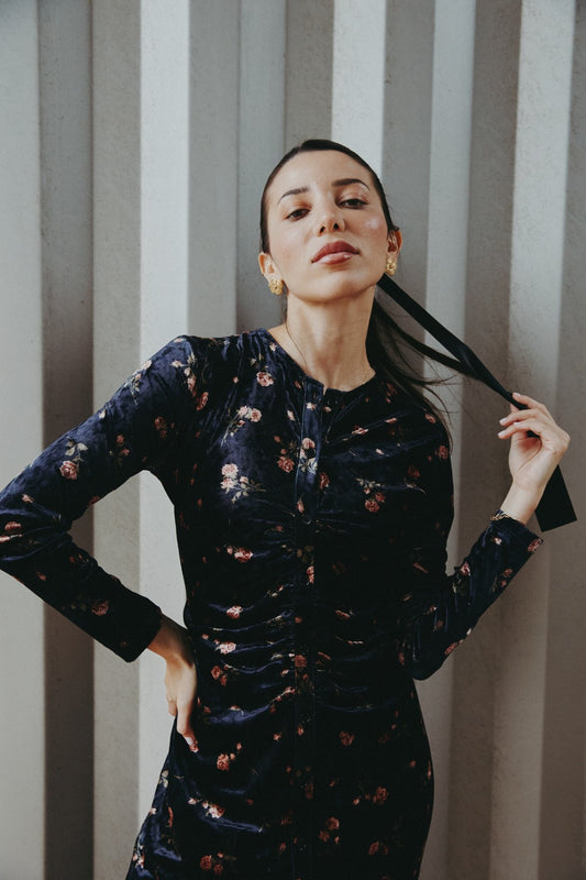 Velour Ruched Black Maxi