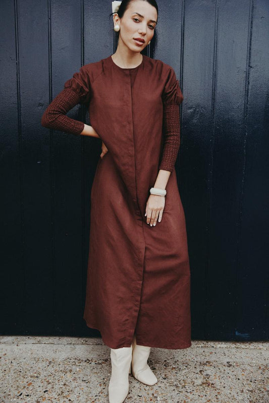 Ruched Linen Maxi