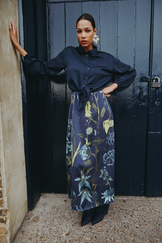 Satin Jumper - Black, Brown, Black Floral Print, Navy Floral Print